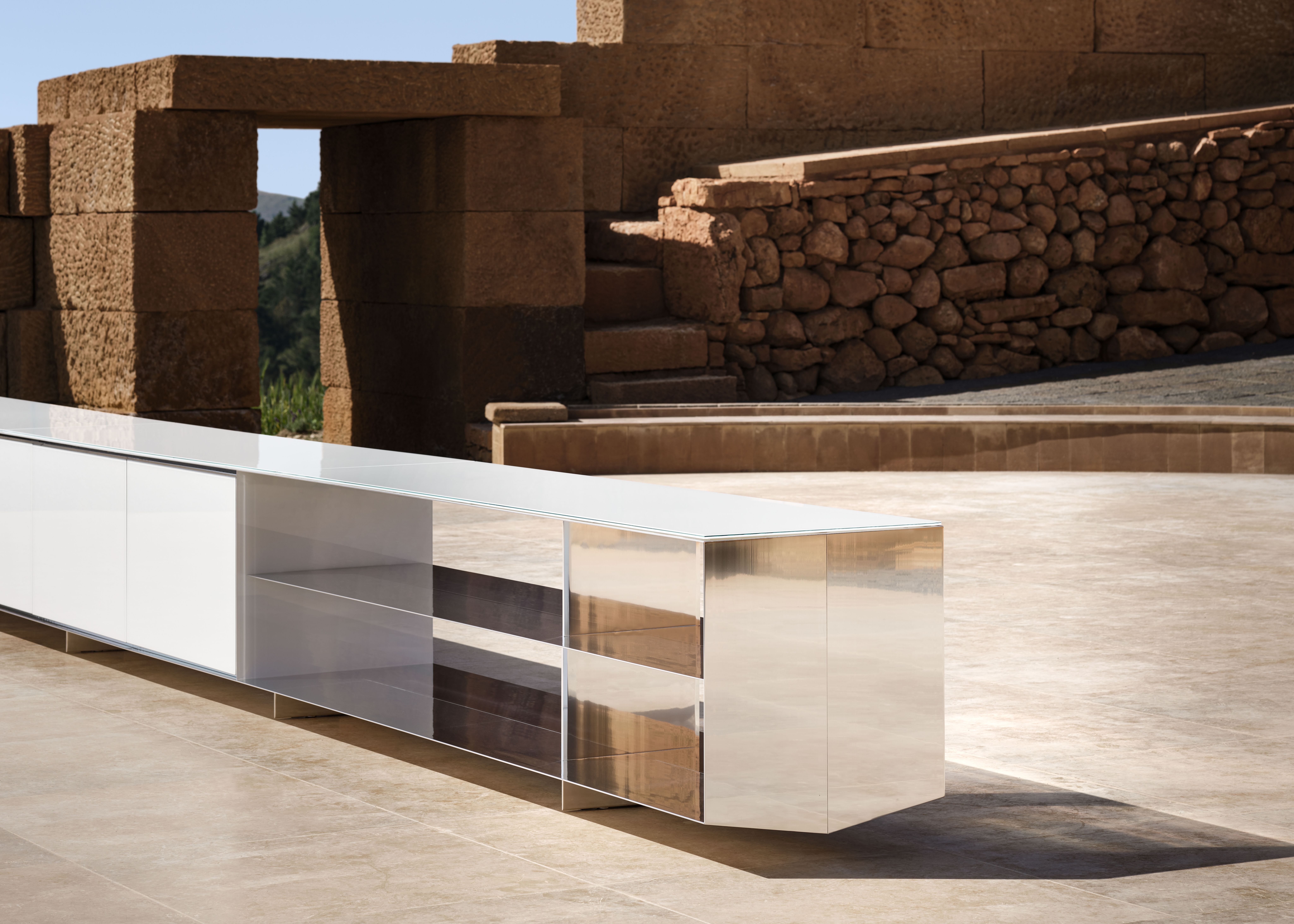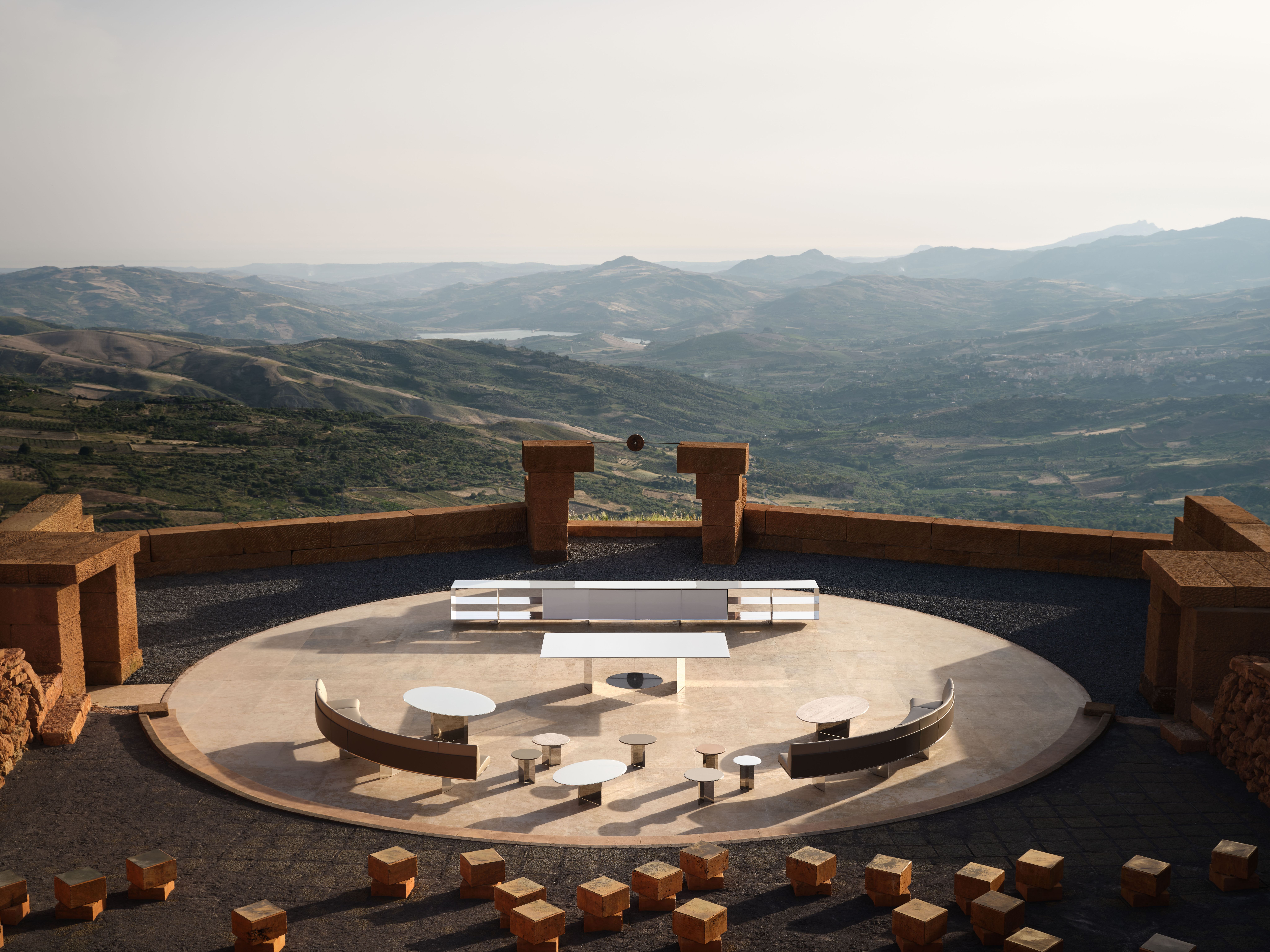 Working on the launch of UniFor's latest collection designed by LSM has been such a touching and intensive venture through forgotten lands and unseen skies. We started in the middle of nowhere in Sicily and we ended up capturing the essence of the place into an installation we will unveil at UniFor Showroom. The Andromeda Theatre, an autarkic architecture by Lorenzo Reina, became an unparalleled backdrop, capturing the essence of delicacy, beauty, and rigor central to this collection.