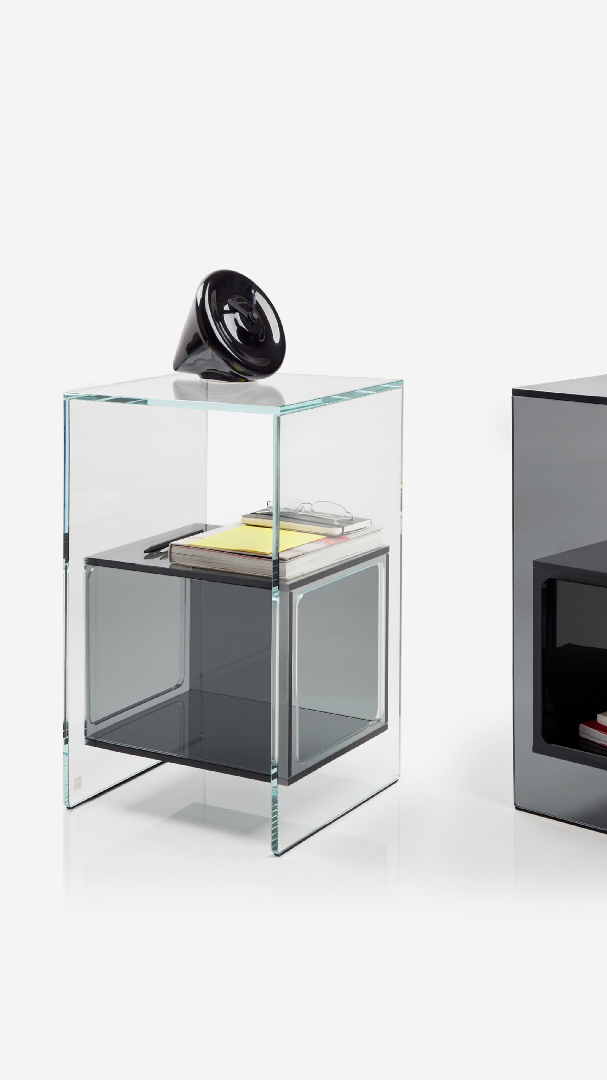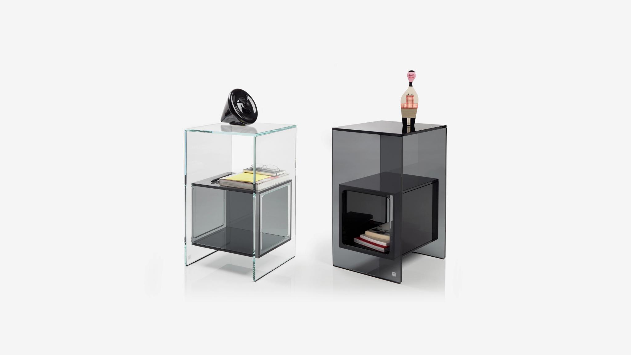 Magique estende il concetto tradizionale di side-table ad un progetto flessibile per i più diversi utilizzi e spazi domestici. Grazie al gioco di volumi che si intersecano, Magique offre tre differenti piani di appoggio fruibili da ciascuno dei suoi quattro lati, regalando sfumature di colore quando lascia trasparire gli oggetti contenuti.