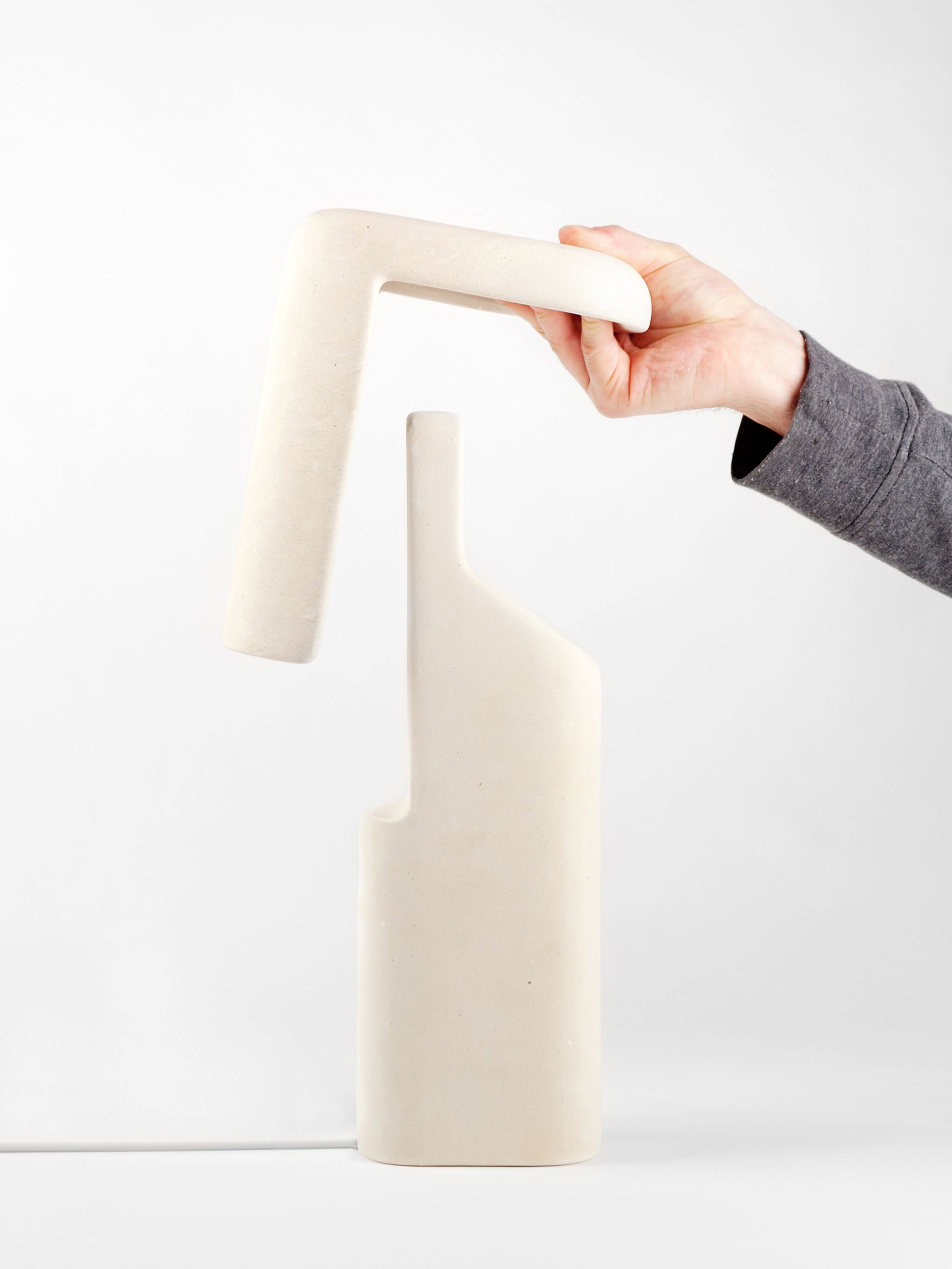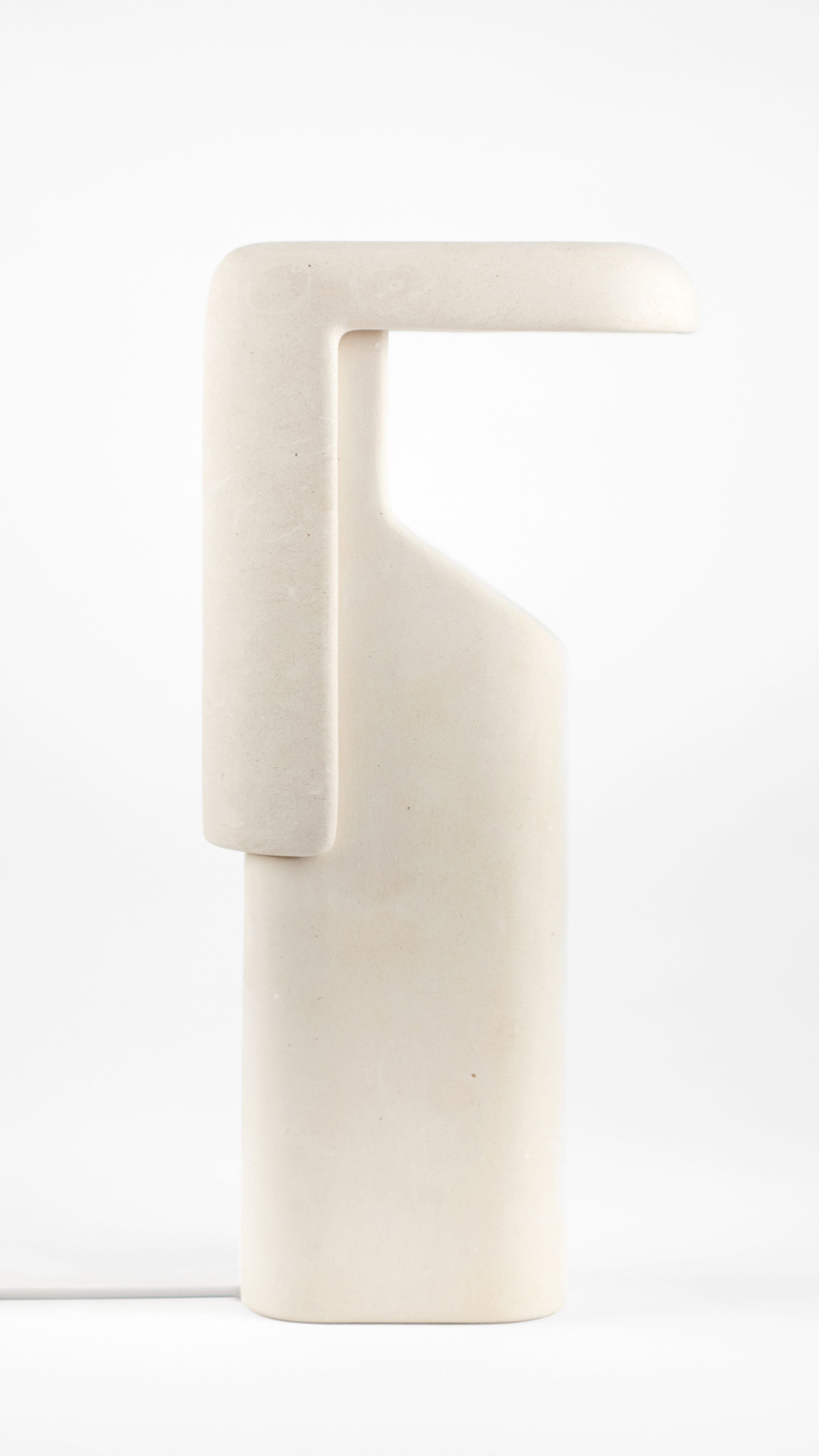 Tegola è una lampada a luce riflessa realizzata in pietra leccese, e composta complessivamente da due parti fresate, il corpo e il paralume, che si innestano facilmente e allo stesso tempo semplificano il processo produttivo. La parte superiore della lampada raccoglie e convoglia la luce sul piano, creando situazioni ideali per la lettura.