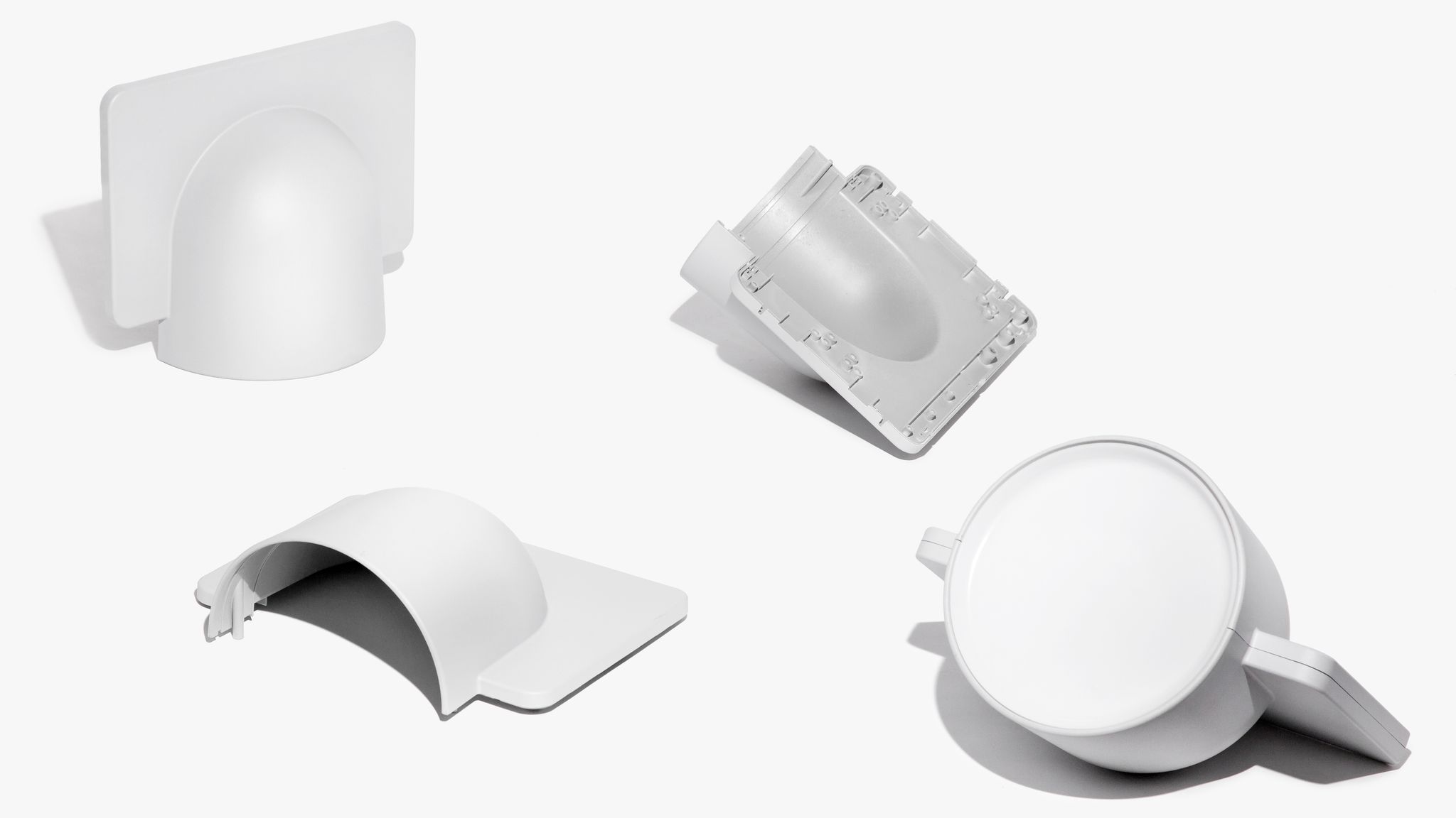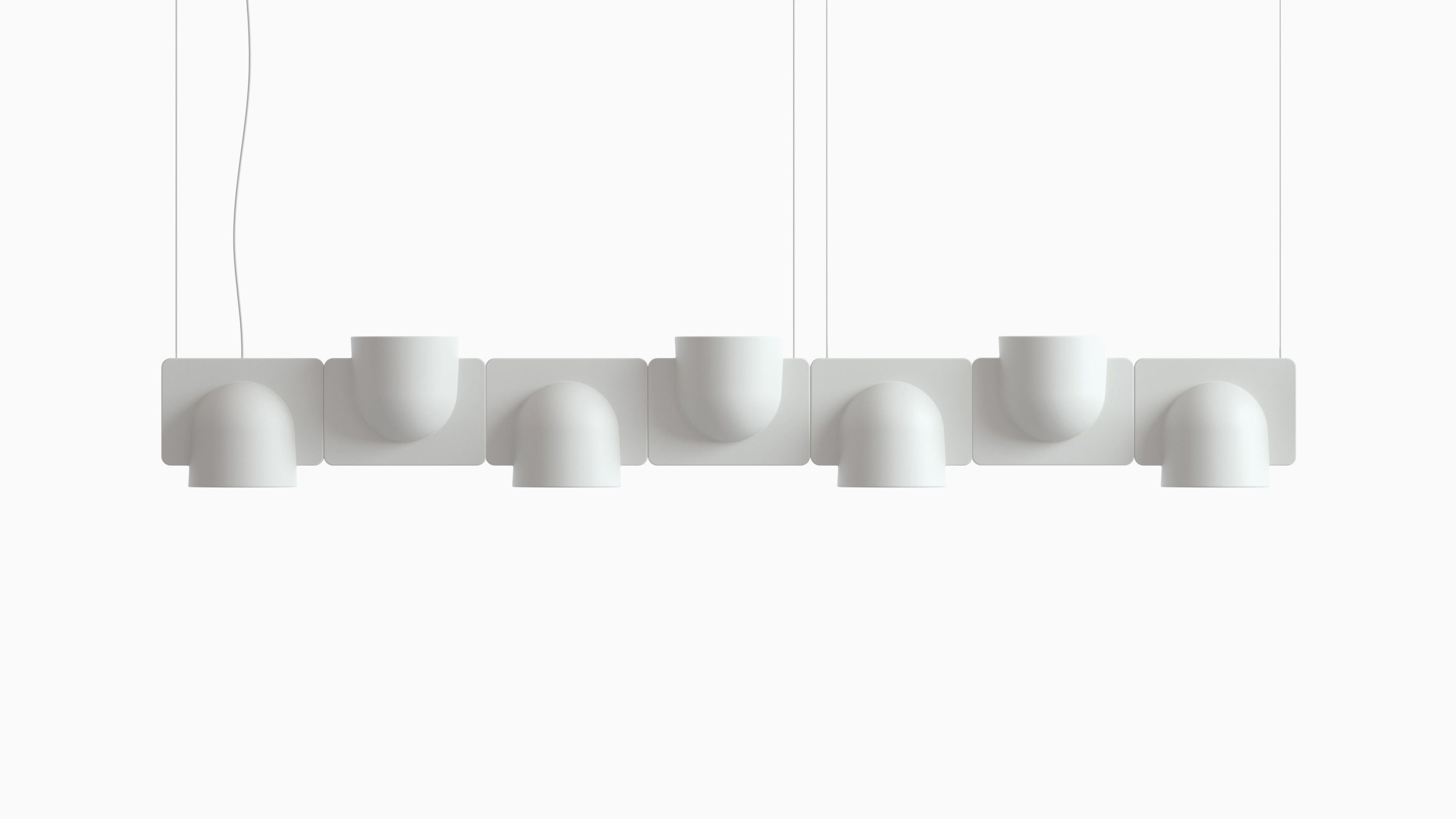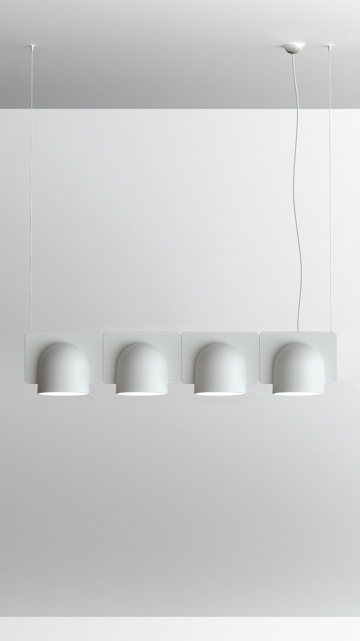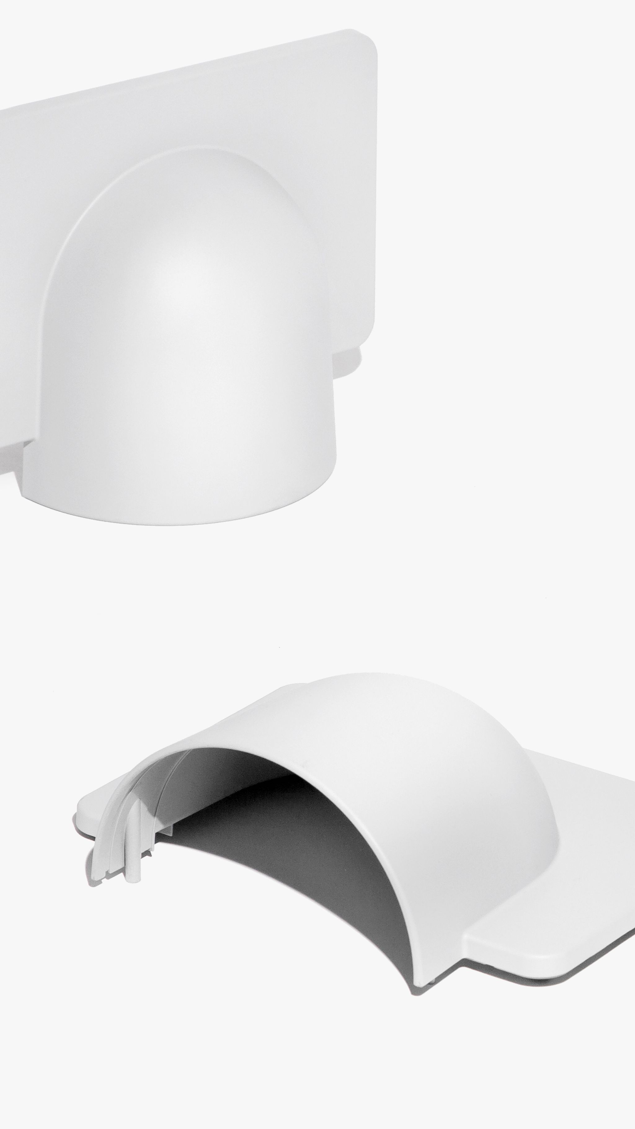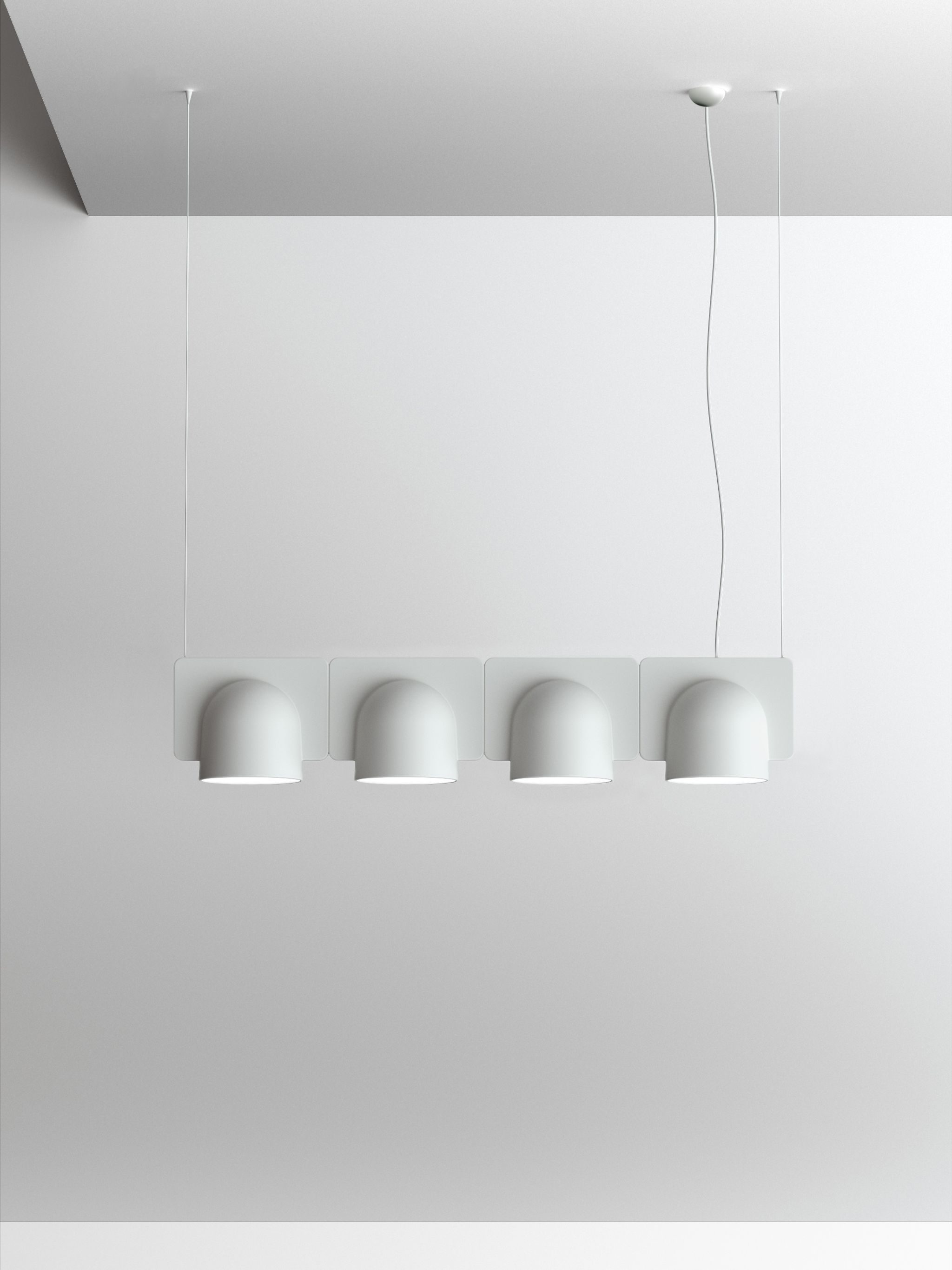 Igloo is a self-supporting lighting system that, thanks to a series of electromechanical connections with curves and spacers, allows for consecutive linking of up to one hundred units without the need for any additional power cable. The double shell in self-extinguishing plastic technopolymer allows for easy installation of the units, whether vertically or horizontally, uplighting or downlighting. The system uses LEDs as the light source and is suitable for contract installation in the retail, hospitality, office and business sectors or in homes.