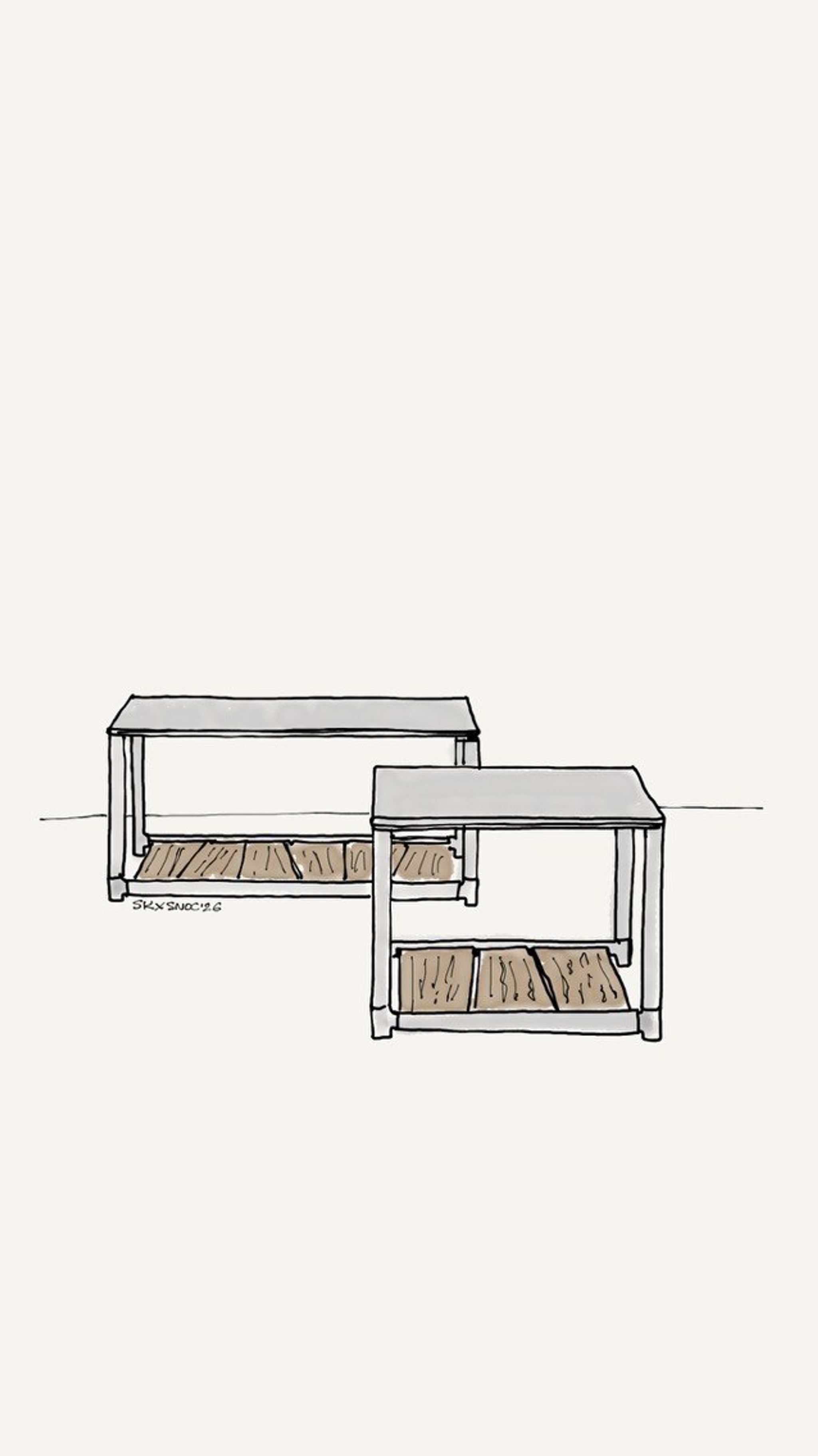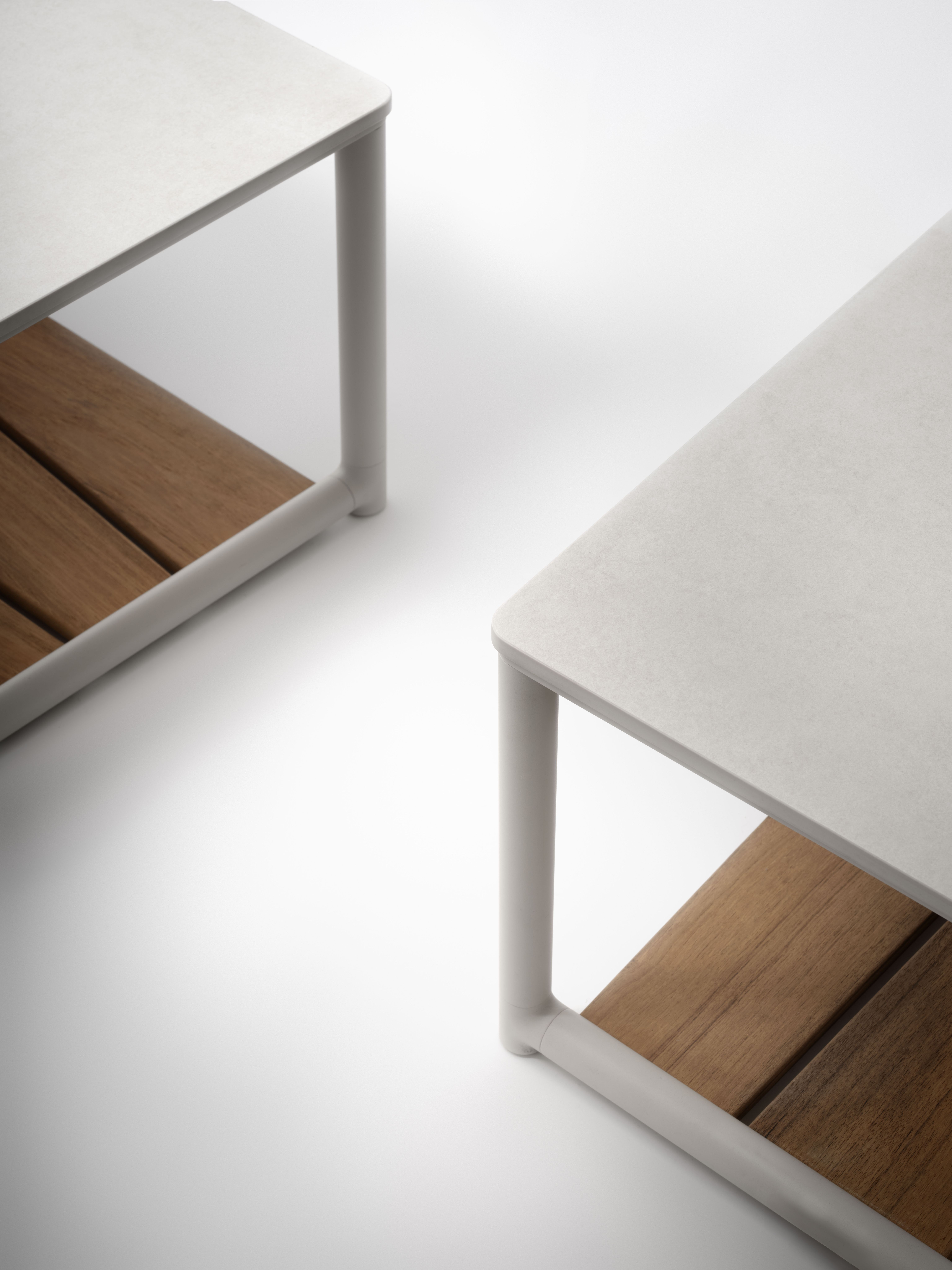 Reduced to its essential geometry, the coffee tables express a balance of lightness and precision at a smaller scale. Inspired by nautical elements, they are defined by clarity, proportion, and structural rigor.