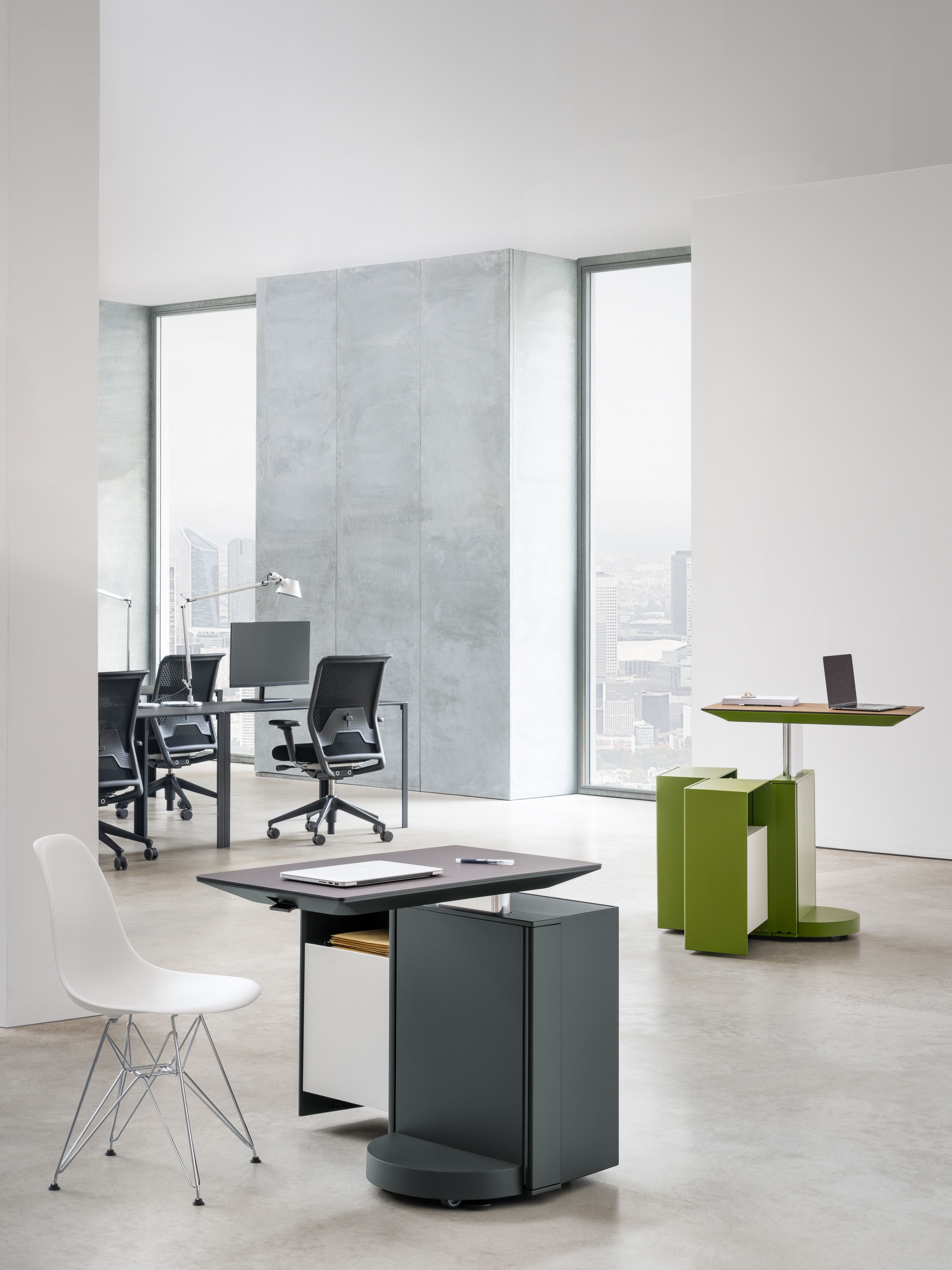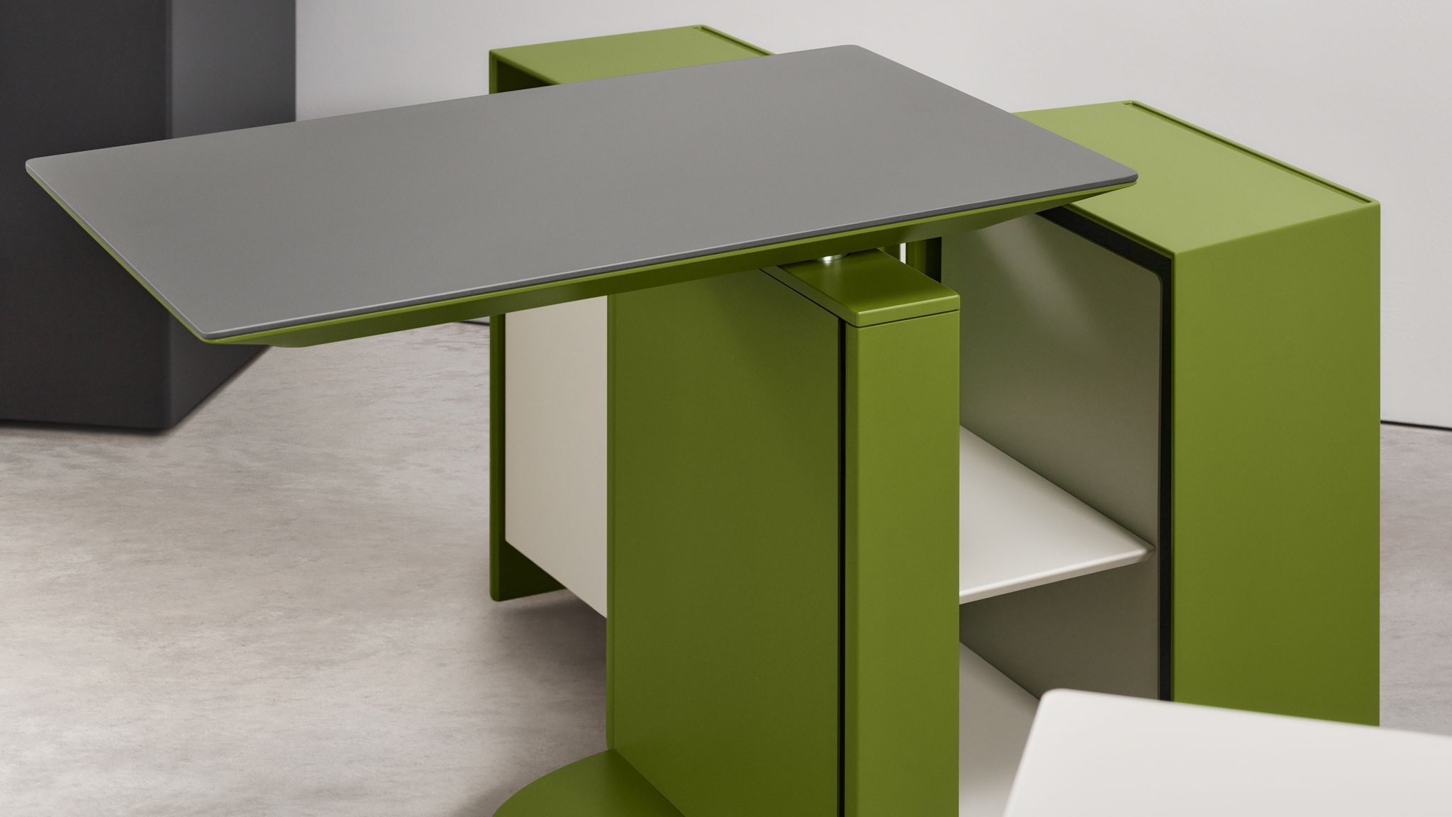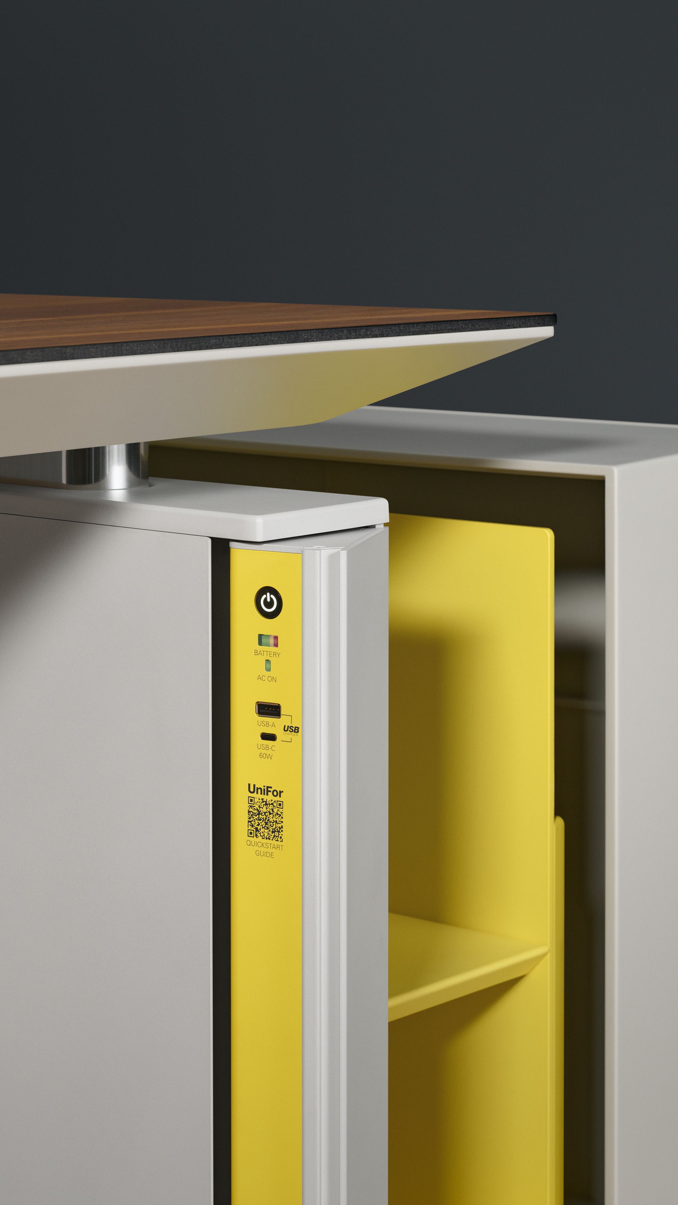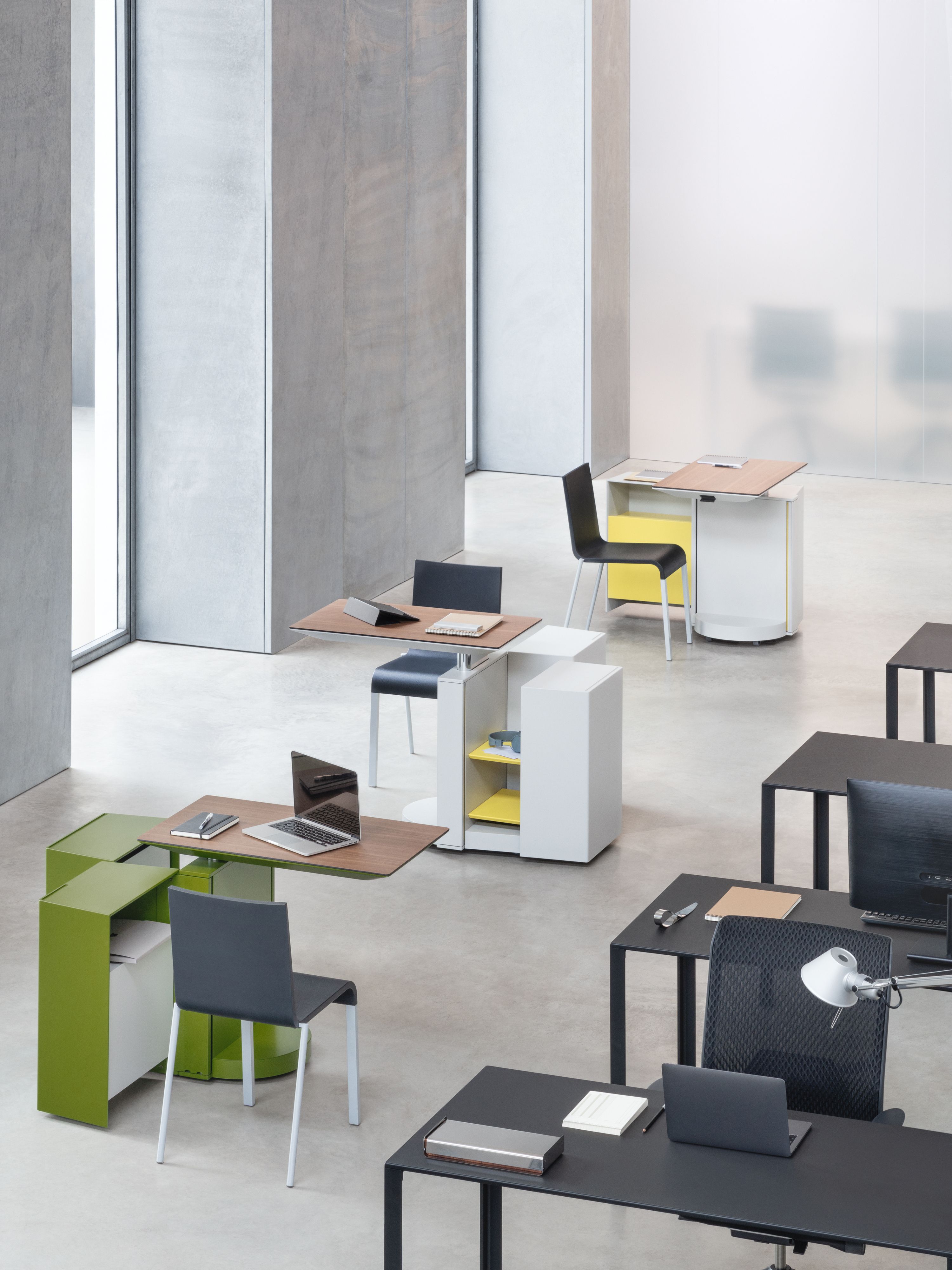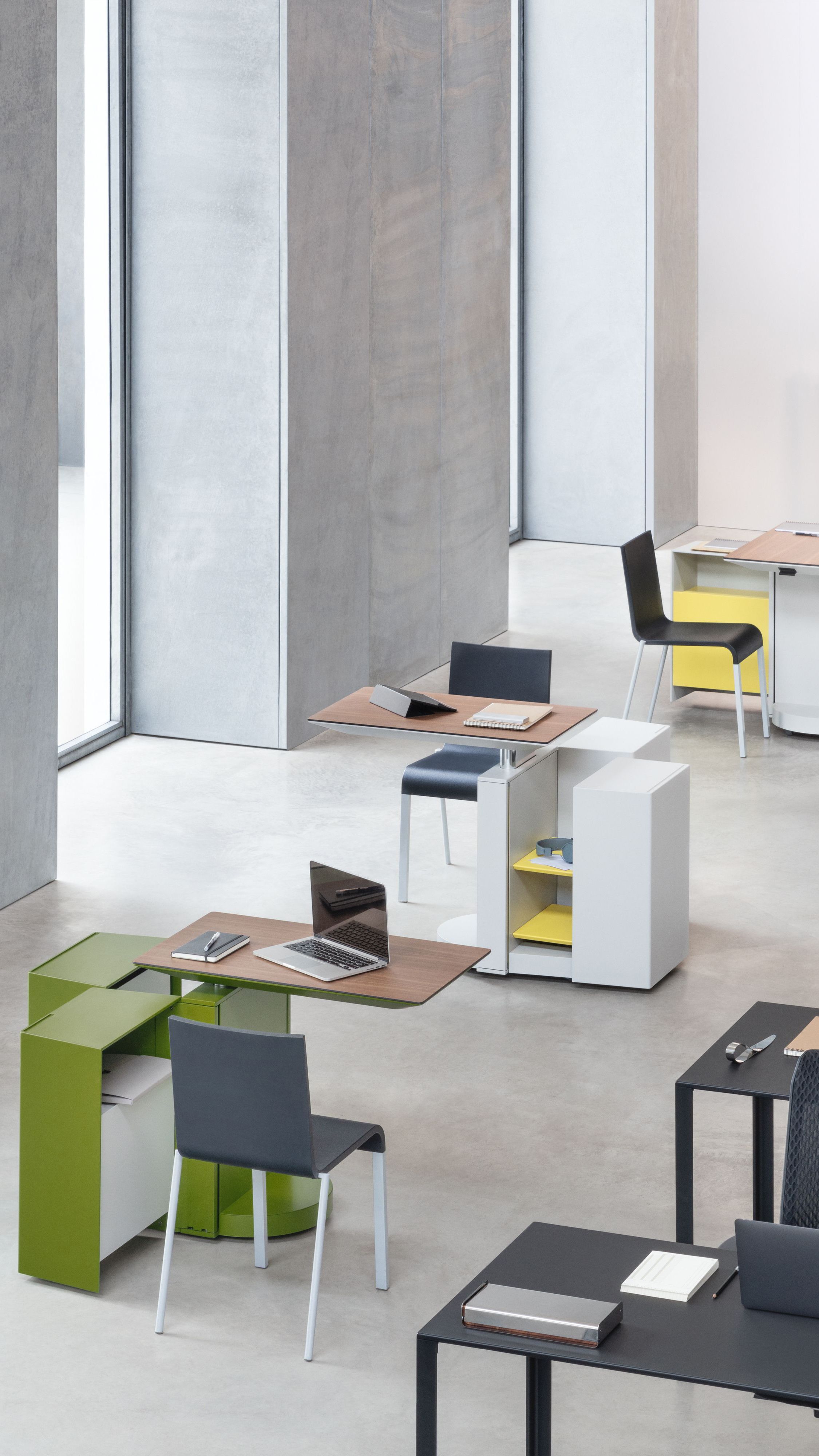 The work environment is continuously changing and evolving, that is why together with UniFor we worked on a new typology of workstation which changes at the same time. In Touch Down Unit the spotlight is focused on the single user and its needs; a compact and nomad workstation which transforms itself depending on the context, from being a desk to an informal height-adjustable table, ready to use standing up or seating on a sofa.