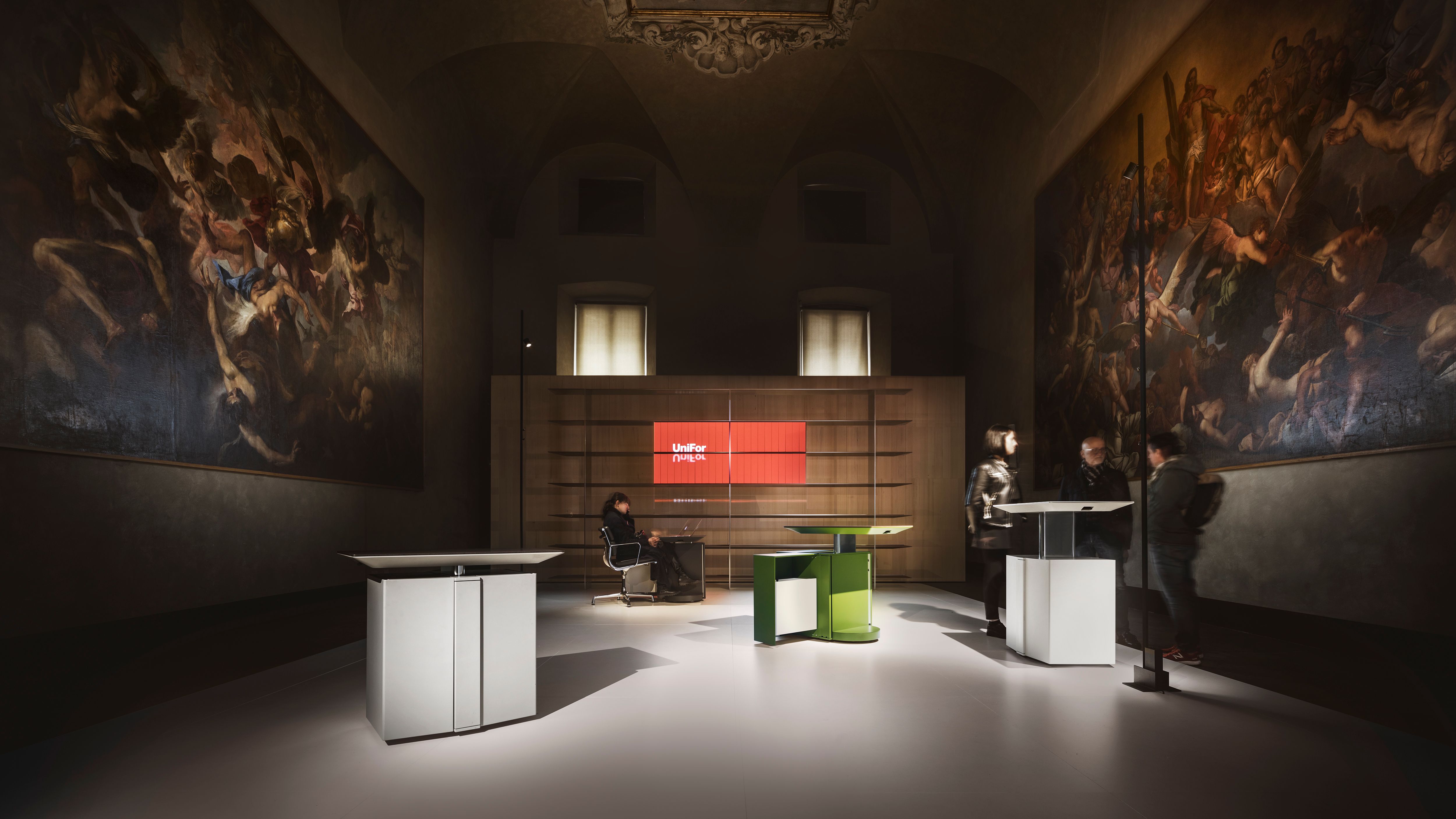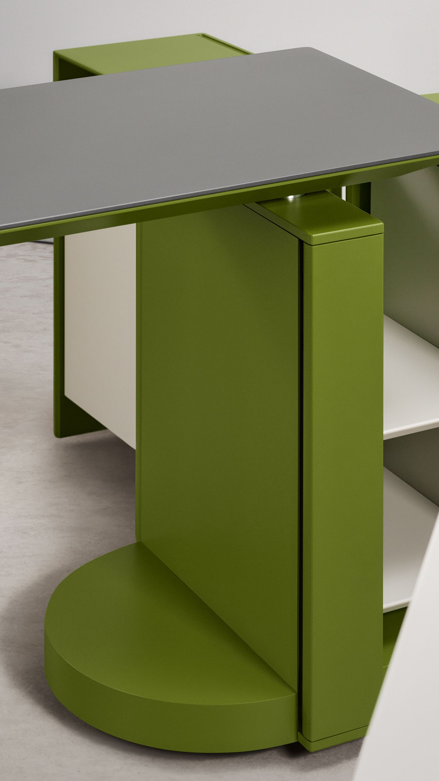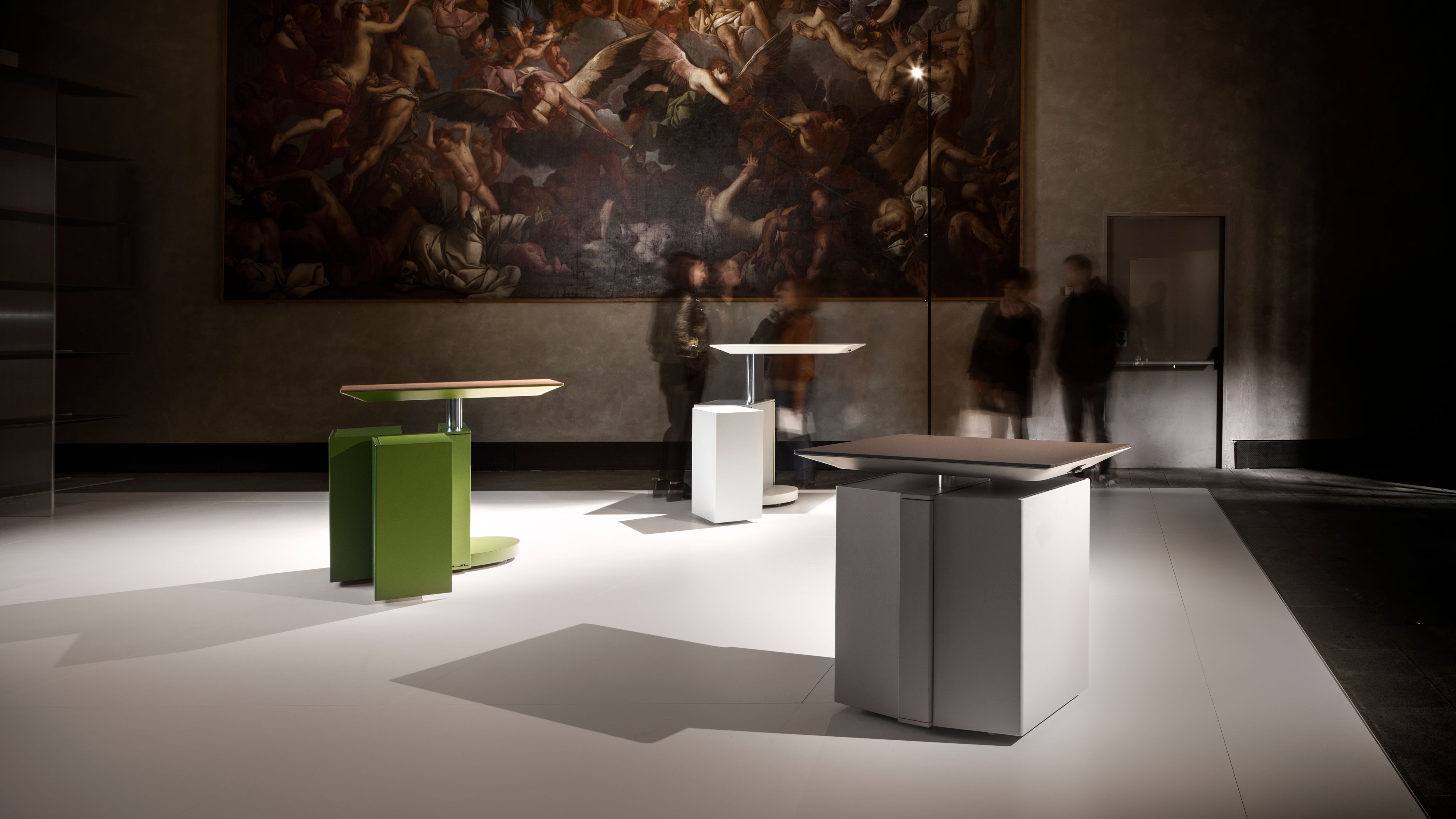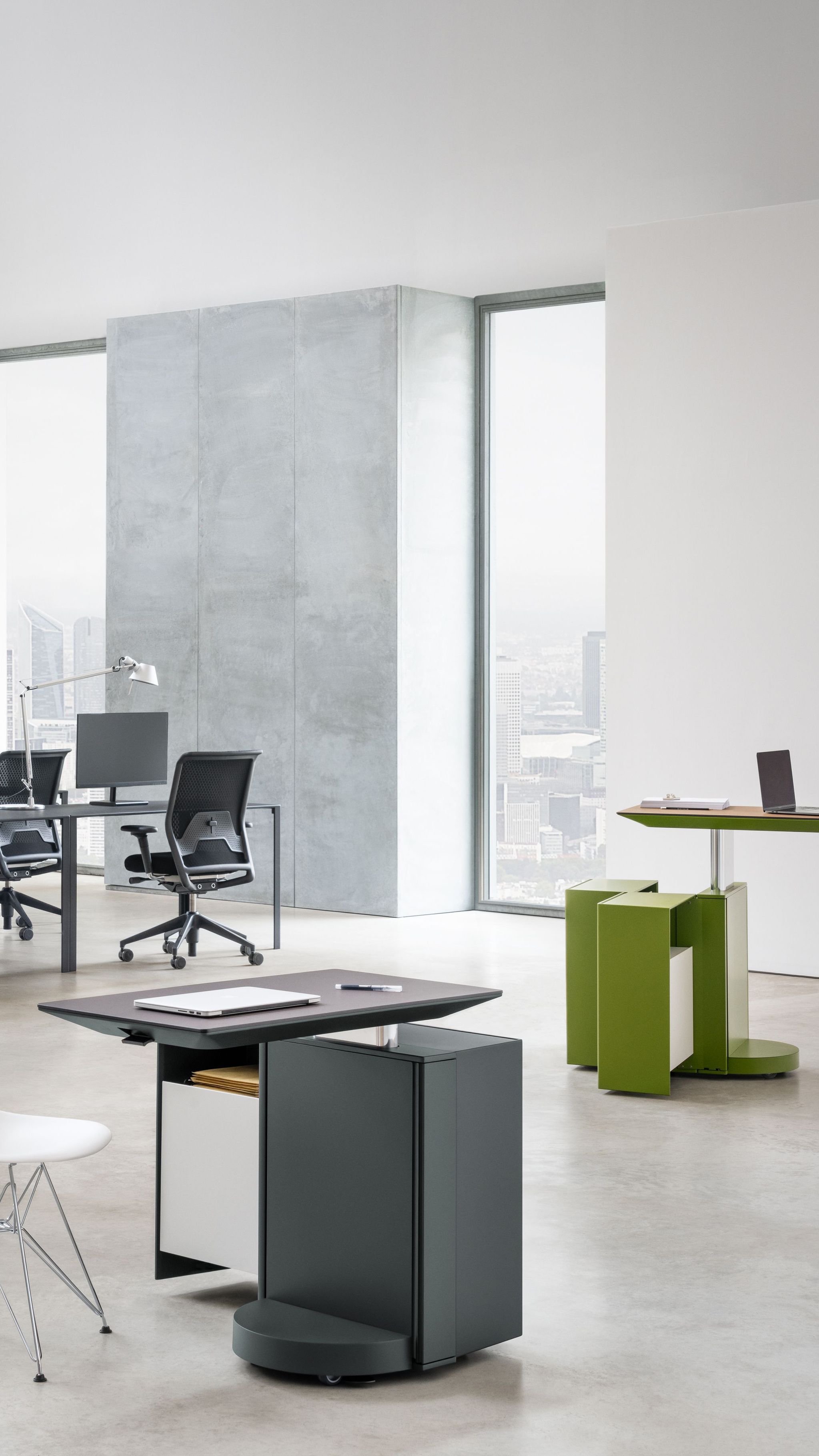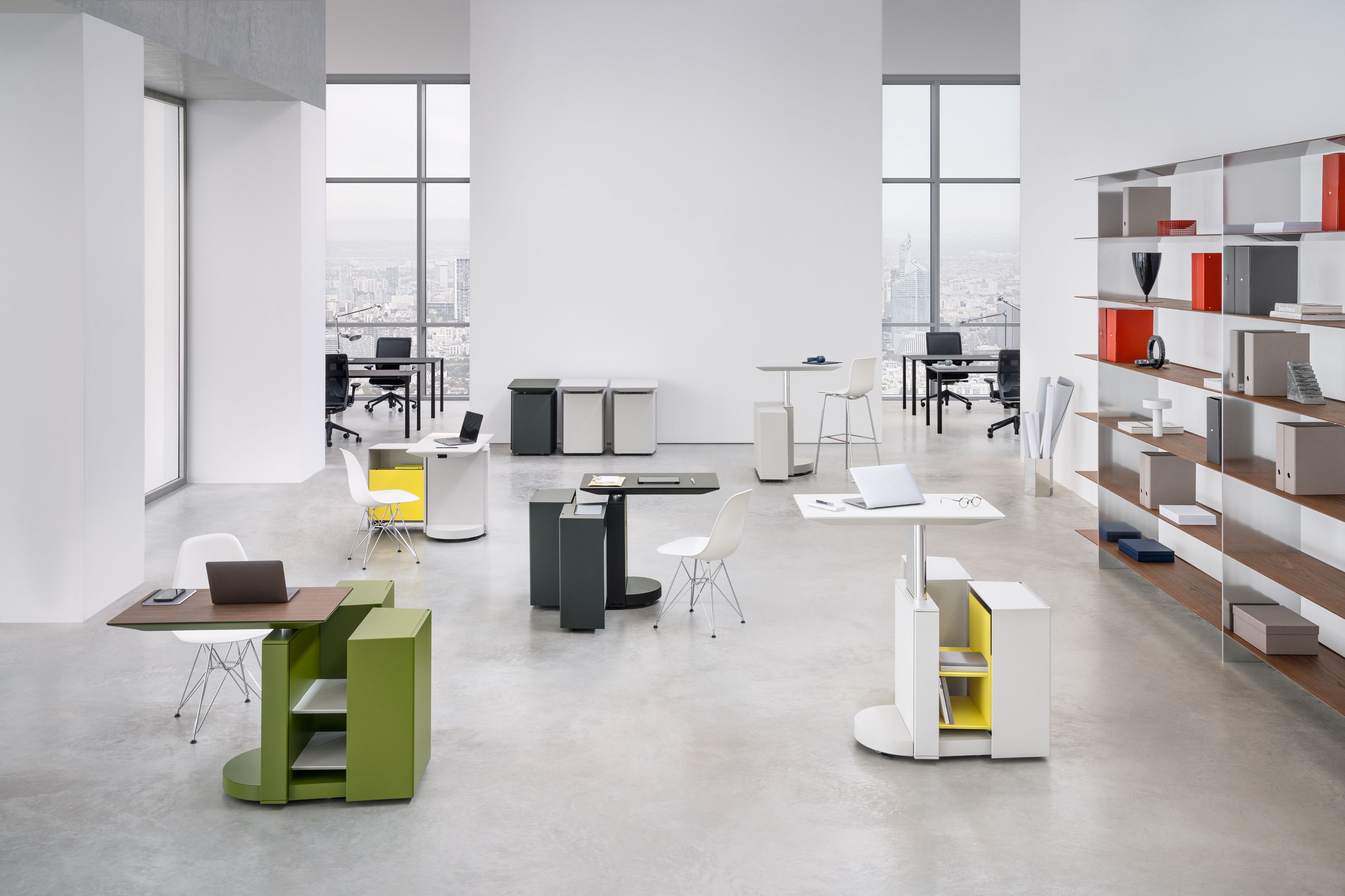 The work environment is continuously changing and evolving, that is why together with UniFor we worked on a new typology of workstation which changes at the same time. In Touch Down Unit the spotlight is focused on the single user and its needs; a compact and nomad workstation which transforms itself depending on the context, from being a desk to an informal height-adjustable table, ready to use standing up or seating on a sofa.