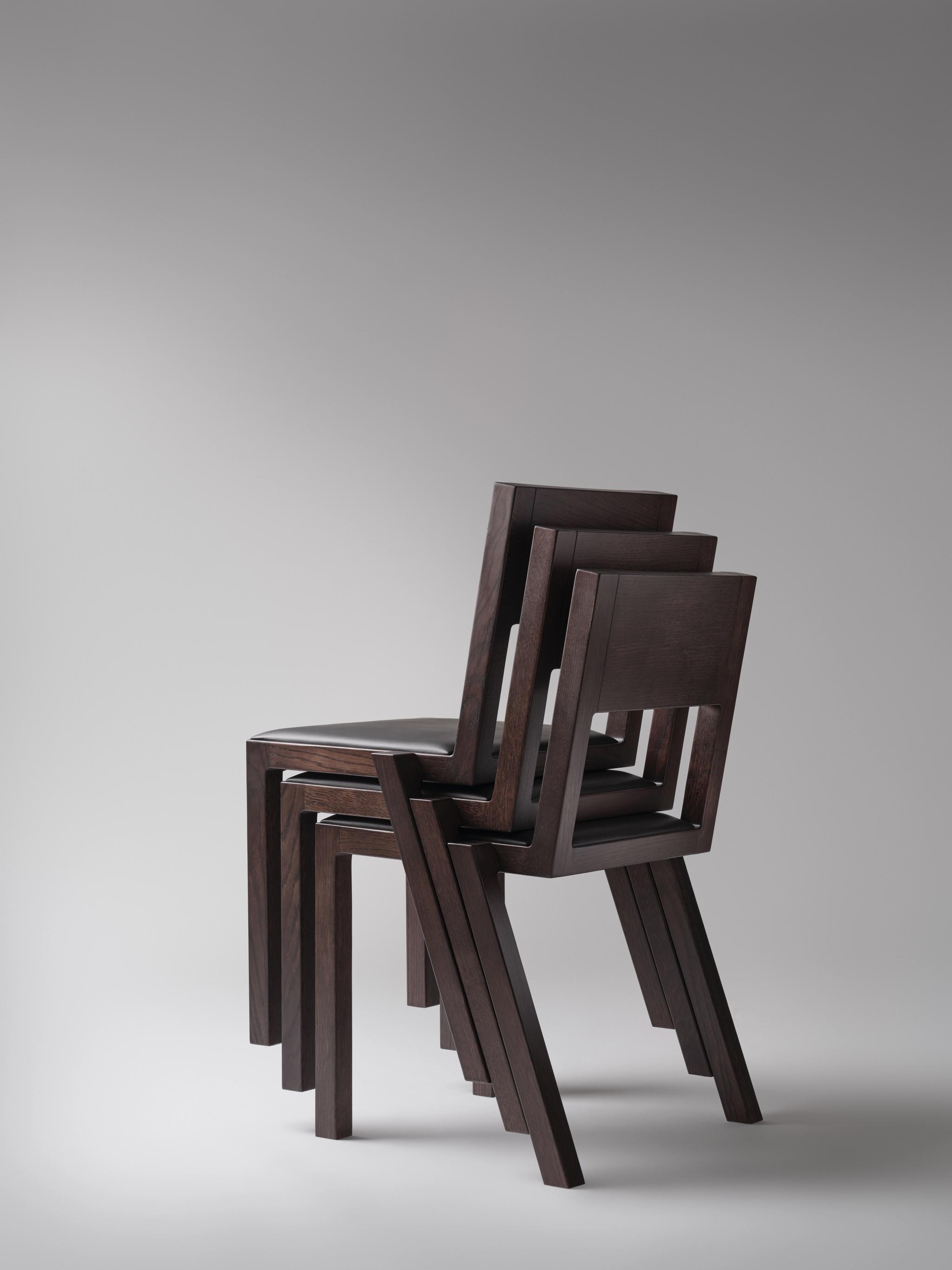 The goal was to redefine the image of the stackable chair, which is often perceived as temporary or purely utilitarian, by instead offering a sober and refined object, designed to stand the test of time.