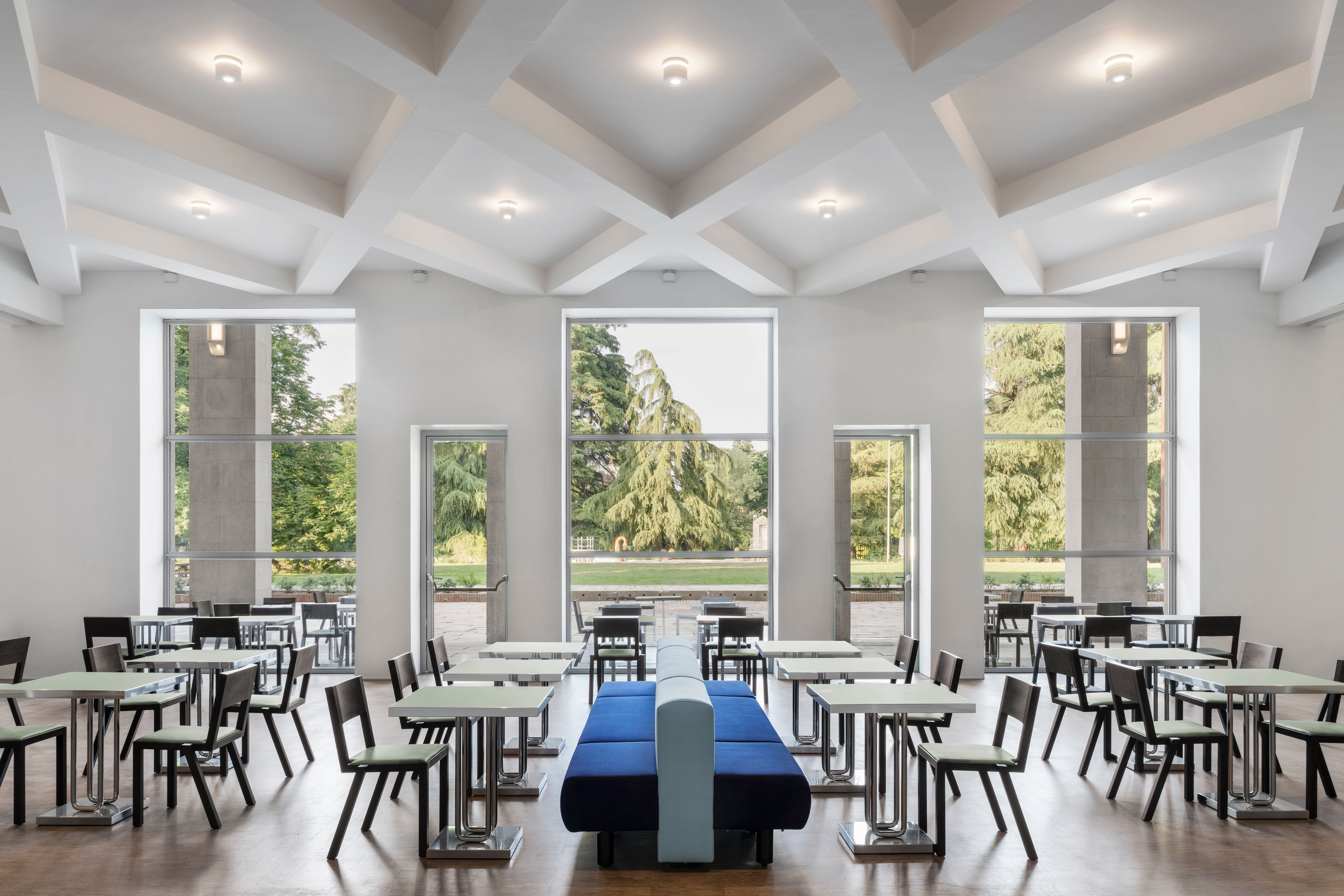 The Triennale chair was designed as part of the renovation of the restaurant spaces, originally conceived by Giovanni Muzio and furnished with custom-designed furniture by Gigiotti Zanetti. The project took into account the existence of the original table, reissued for the occasion by UniFor, in order to create a coherent and respectful dialogue between the new seat and the historical furnishings.
