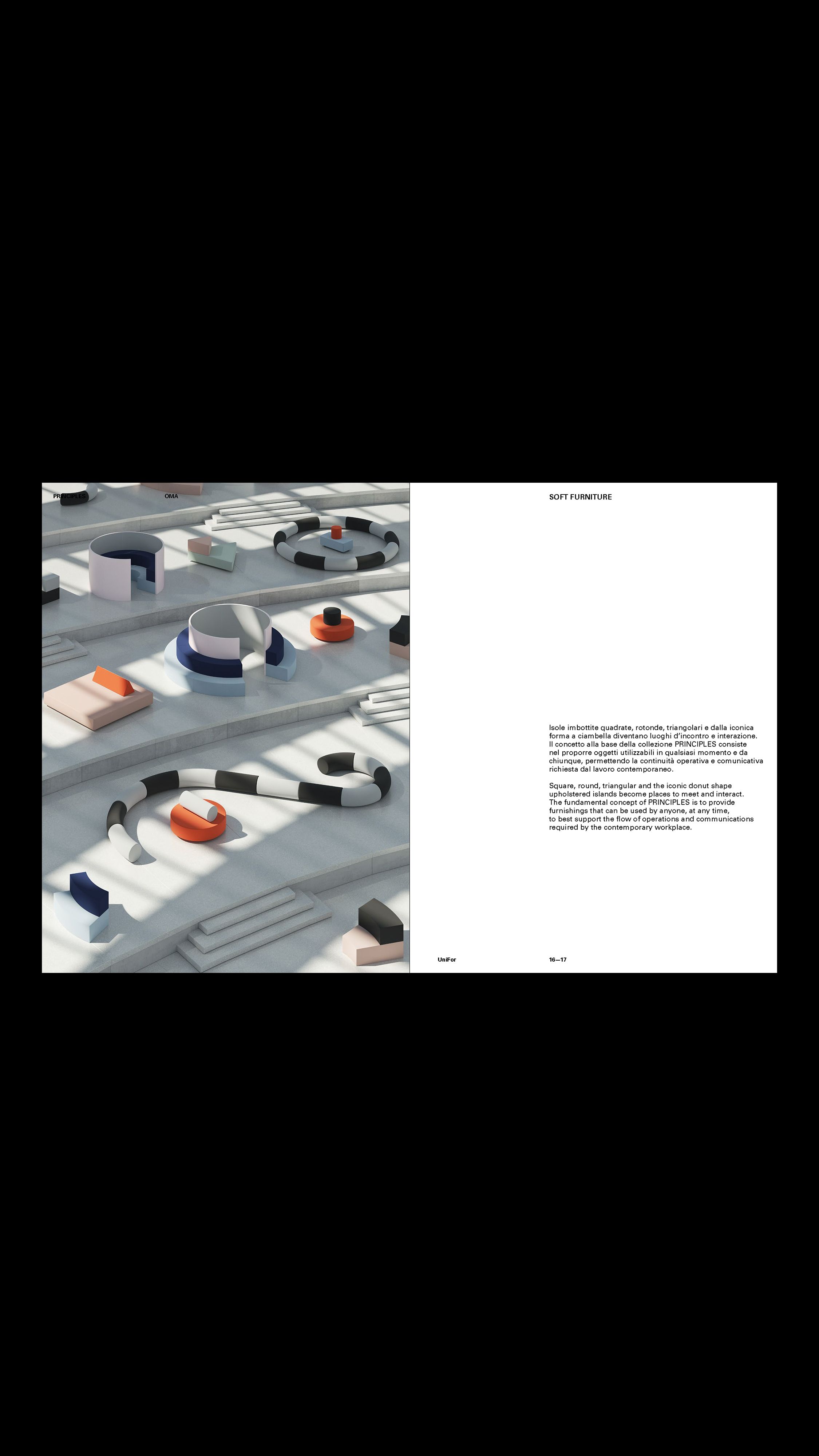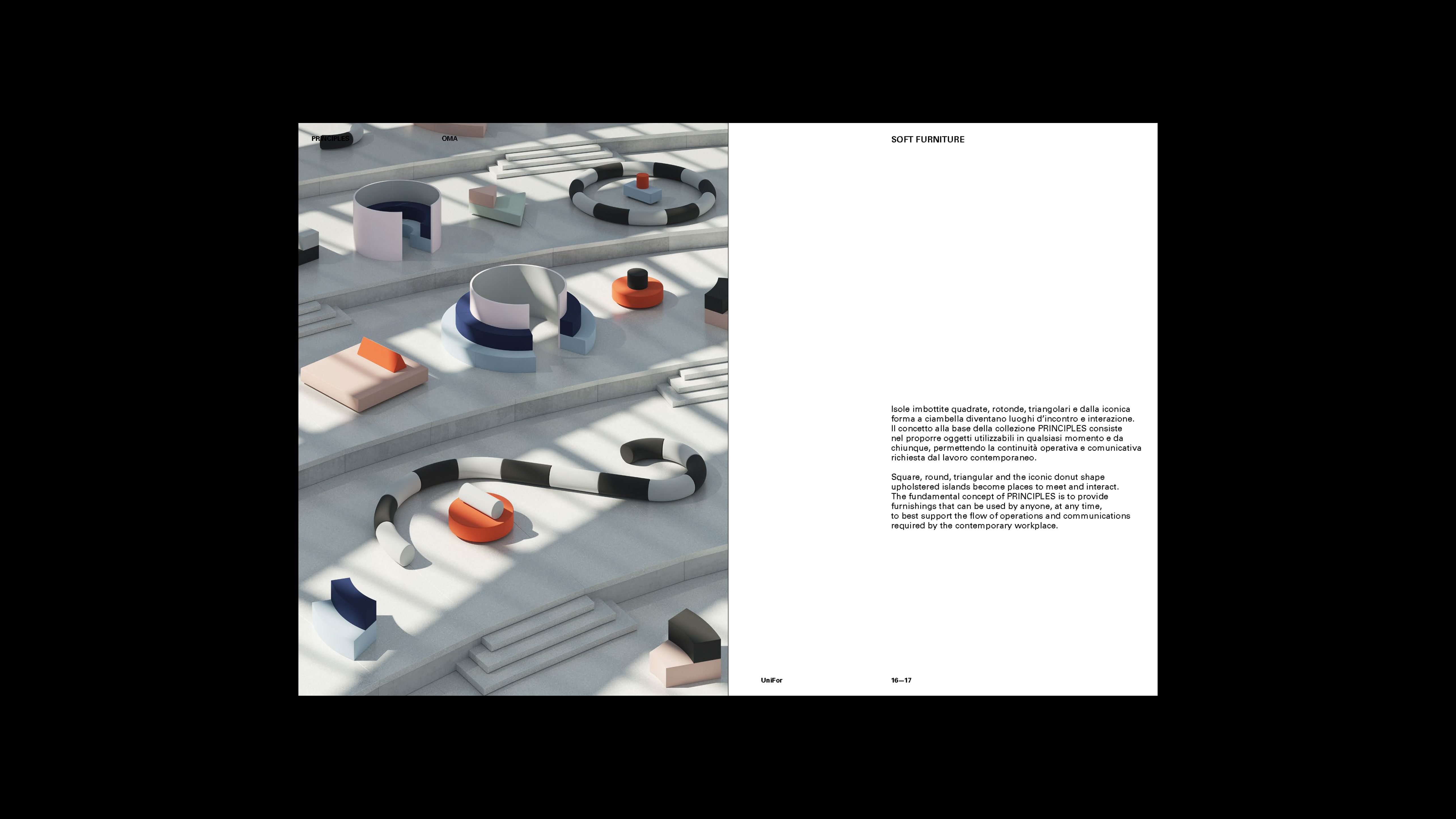 As part of our art direction for UniFor, we curated the creative direction and communication for the launch of Principles collections designed by OMA in collaboration with UniFor. We worked together with Studio Amos Fricke for the photography and OMA for the illustrations. The collection has been showcased at UniFor Showroom during Milan Design Week 2022, Milano.